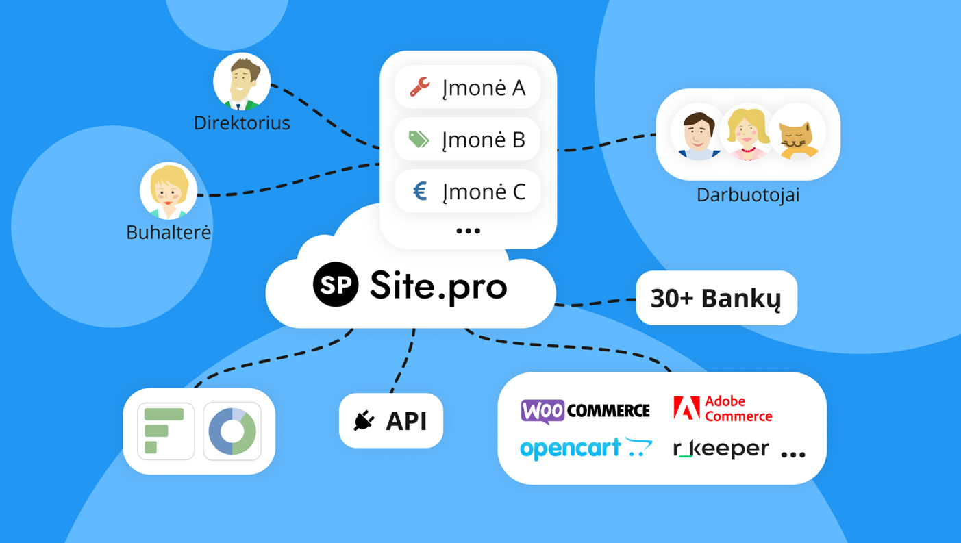Site.pro – tai debesų kompiuterija pagrįsta apskaitos programa, kuria galima naudotis iš bet kurio įrenginio ir bet kuriuo metu. Sistemoje vienu metu gali dirbti neribotas skaičius vartotojų, o prieigos lygiai nustatomi administratoriaus.